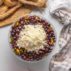 סלט ירקות גינה, חסה, זיתי קלמטה, עגבניית שרי וגבינה בולגרית ברוטב קיסר.